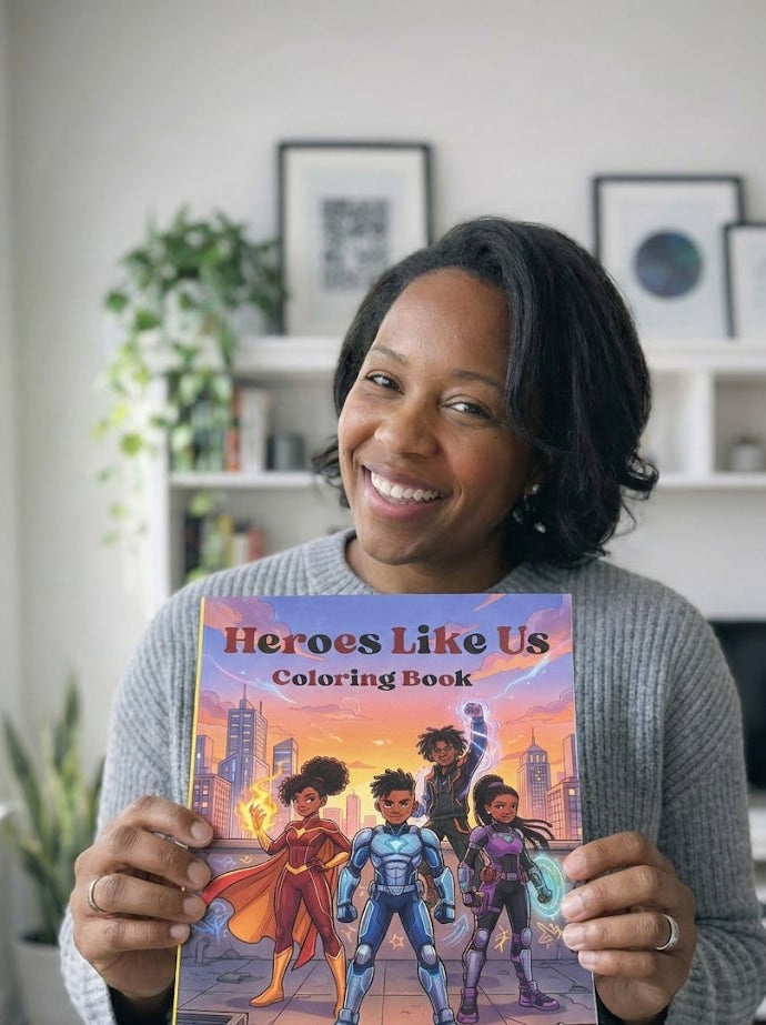 Heroes Like Us gives Black kids 47 pages of powerful superheroes who look like them, plus confidence affirmations on every page.